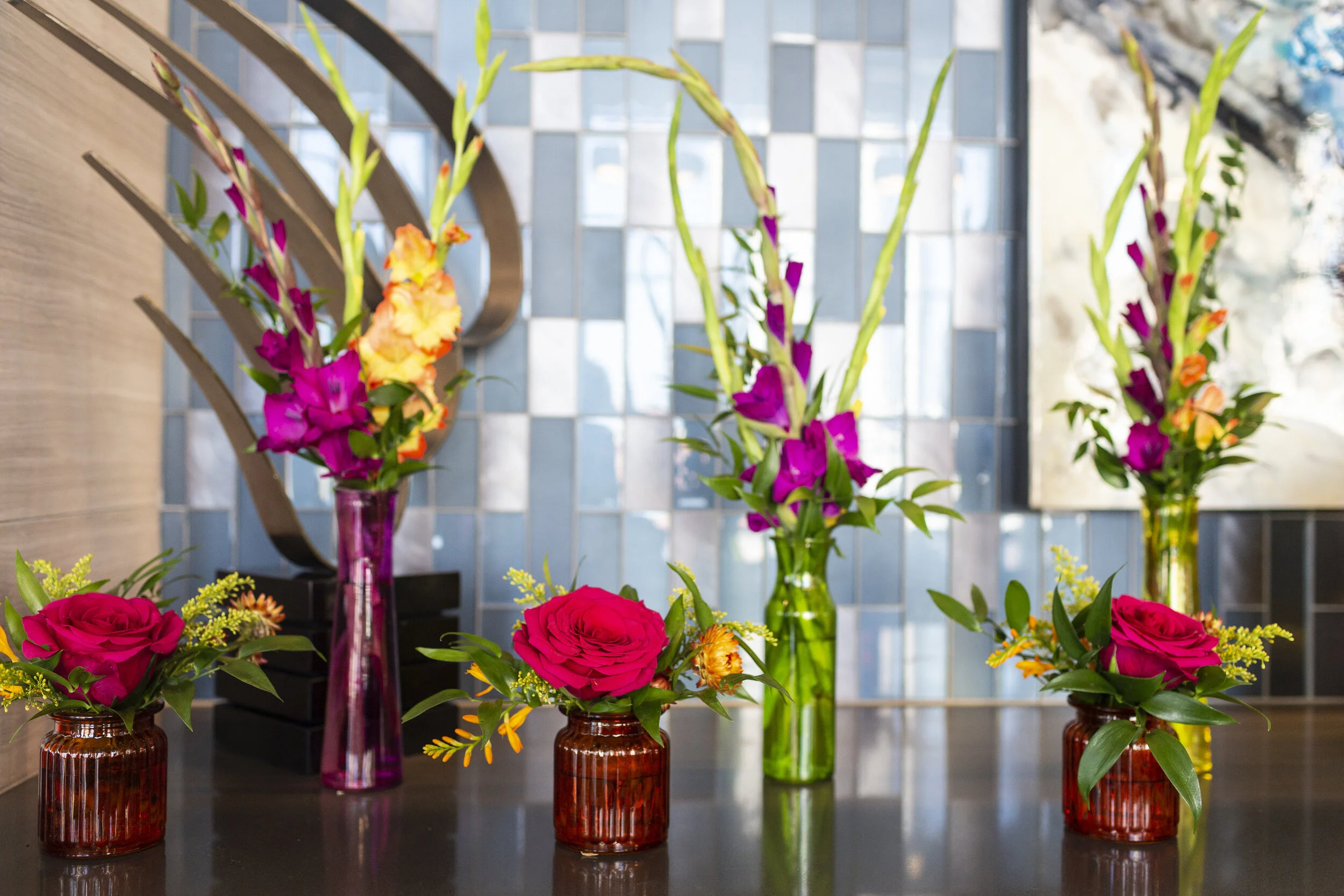 Our Fiesta bud vase collection come with everything you need to create these super cute bud vase arrangements. This kit features hot pink roses and assorted gladiolas for bold impact with just a few blooms.